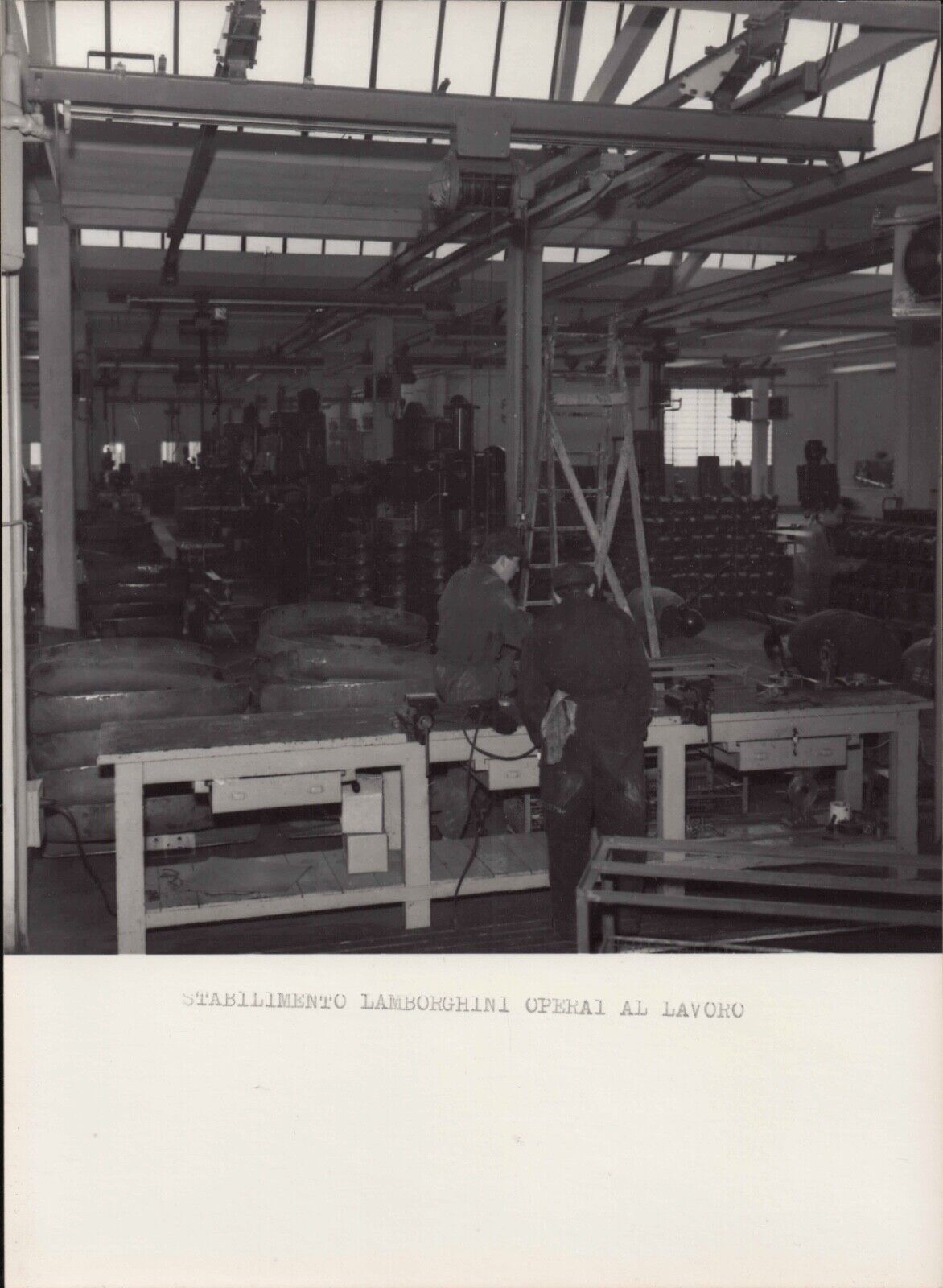 Extremely rare set of 4 original press photographs of the Lamborghini factory at work, circa 1964. A great addition to any Lamborghini collection! All measure 24x18CM and are stamped DUFOTO to the reverse.