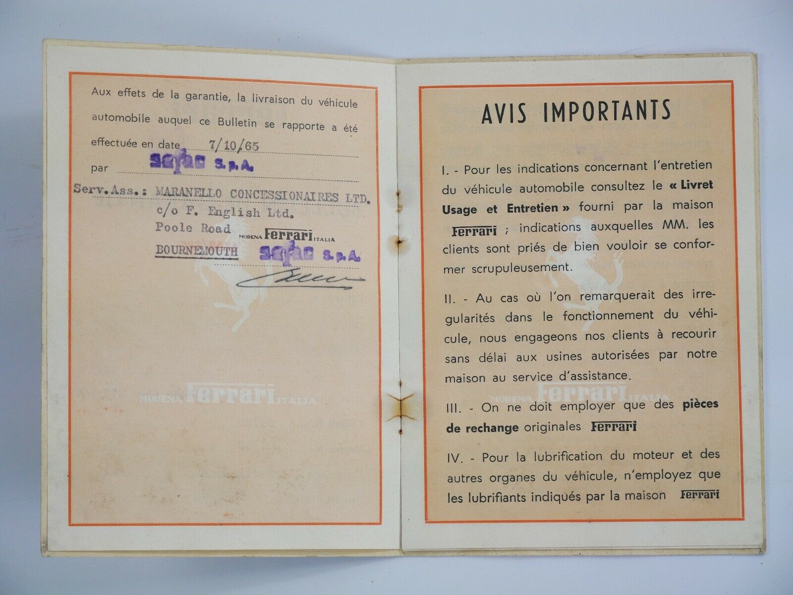 1965 Ferrari 275 GTB Handbook & Warranty Card *07789* The Beatles